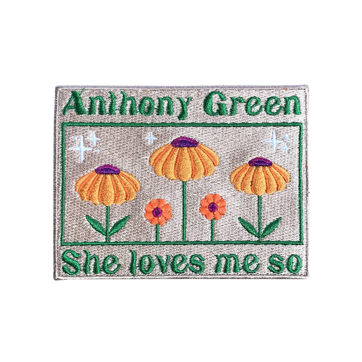 Embroidered patch with adhesive backing for iron on application. Size is 4" wide by 3" tall.